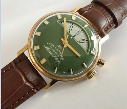 ポールガルニエ Minu-Stop ![]() 1800年代 ポールガルニエは ブレゲと並び天才時計師で、 ブレゲと並ぶ天才時計師といわれていました。 1970年代には会社も消滅しましたが、 「MINU STOP」、 通称"パーキングメーター"という、 独創的なデザインが今も尚、 時計ファンの世界では知られています。 当時車をパーキングに止めて、 ボタンを押し何分経過したかを 確認する事のできる、クロノグラフです |